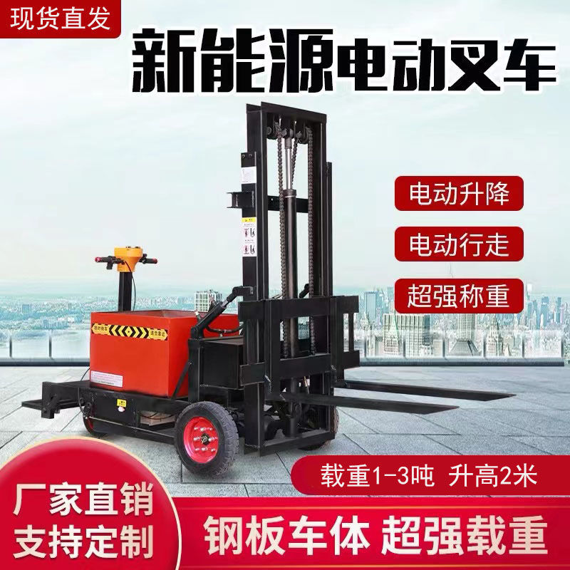 衡水市小型电动叉车1吨站驾式2吨液压升高铲车全自动仓储堆高车